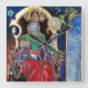 Colourful, vibrant , contemporary painting in gold ,blue,red,green,brown colours . A mysterious hypnotic sorcerer with elegant gorgeous red velvet costumes holding a magic sphere sitting on a gothic throne with gargoyles and an owl. Ambient is surreal,fantastic ,alchemic where you see a jester is drinking from a cup, a templar monk flying on a frog,transparent bubbles,fantasy landscapes with hell fire,cosmic blue sky with stars , mountains of heaven,trees .Egg Tempera on wooden panel with golden foil. 1989 , Miniature Made with pictorical techniques of 1300 by Alessandro Lumini (c) It is also a beautiful fantasy design for Christmas,Holiday,Birthday,New Year's Eve day, Mardi Gras and Carnival greetings.