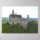 Neuschwanstein Castle as viewed from a footbridge about 300 feet over a river gorge,