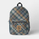 Neutral Beige Brown Teal Blue Plaid Tartan Pattern Printed Backpack