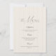 Featuring delicate vertical stripes and an elegant mixed typography header, this menu blends modern editorial style with classic wedding tradition. The airy layout and warm neutral tones create a sophisticated look that pairs beautifully with gold flatware, ivory linens, and estate-style floral arrangements.