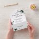This Neutral Botanical wedding all in one invitation provides a simple, rustic plant palate to coordinate with any traditional wedding theme. The minimal greenery, with dark and grey shades of elegant green eucalyptus leaves and plant foliage, alongside the classy casual calligraphy, open up a minimalist nature vibe to a classic, formal marriage celebration.