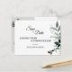 This Neutral Botanical wedding save the date provides a simple, rustic plant palate to coordinate with any traditional wedding theme. The minimal greenery, with dark and grey shades of elegant green eucalyptus leaves and plant foliage, alongside the classy casual calligraphy, open up a minimalist nature vibe to a classic, formal marriage celebration.