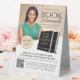 Professional "Book Launch" table tent sign features a professional appeal and elegant minimal design with neutral brown and white colour tones. Add your own book mockup and personalise the sign to your liking. Perfect for your book marketing needs, book signing events, and more!
