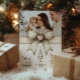 This charming holiday card blends soft neutral tones with a cosy rustic aesthetic. A large hand-drawn bow ties the design together, framed by snowy fir branches and woodland details like a vintage reindeer, hot cocoa mug, and Christmas tree. The warm, muted palette complements your family photo, making it perfect for those who love a minimalist winter wonderland. Personalise the text to create a heartfelt card that stands out with gentle elegance.