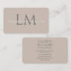 This minimalist business card features a soft classic taupe palette with refined monogram detailing and professional text placement. Designed for modern brands and elevated personal use, it offers a calm, polished presence with clean typography and balanced spacing. Ideal for entrepreneurs, creatives, and professionals seeking a timeless card that communicates confidence, clarity, and understated sophistication. Suitable for consultants, accountants, real estate professionals, designers, attorneys, and other client-facing roles.