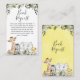 Sweet jungle animals themed baby shower book request insert featuring four cute watercolor safari animals and some greenery. All text is editable making this a very flexible template.
