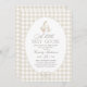 Celebrate the arrival of a little one with this neutral beige gingham goose themed baby shower invitation.