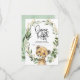 This design features watercolor illustration of an adorable baby leopard and soft botanical greenery in green and gold.