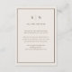 These elegant, modern neutral wedding guest detail cards feature a simple warm, creamy white minimalist text design with your initials or monogram and a classic brown frame. You can use these cards for driving directions, reception or transportation information, hotel or accommodations information, and any other wedding details you need your guests to know.