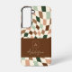 Neutral Modern Chequerboard Elegant Monogram Samsung Galaxy S22 Case. Trendy boho colour palette. Use the colours as shown or use the Edit Tool to choose your own 5 colours for the checkers, background colour, and monogram elements. © Kimbellished, LLC