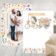 This sweet neutral-toned thank you card features a watercolor hedgehog pulling a cart of pastel florals with a space for your baby shower photo. The soft tan accents and botanical frame make it perfect for gender-neutral or nature-inspired baby showers.