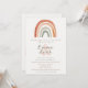 This wedding invitation features a charming hand-drawn style neutral rainbow in soft earthy shades like beige, blush, and warm taupe. Its simple and sweet design exudes modern boho style with a whimsical touch. Perfect for contemporary, relaxed weddings with a minimal or nature-inspired theme. Coordinates beautifully with matching rainbow RSVP cards, thank you stickers, and more.