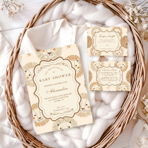 Neutral Safari Lion Baby Shower Diapper Raffle Enclosure Card