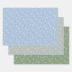 Be prepared to give gifts for any occasion with this set of polka-dotted wrapping paper in three colour combinations: blue with white and purple, grey with white and green, and green with white and more green. The neutral colours and simple design mean that your gift will not appear out of place wherever or whenever you give it.