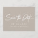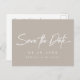 Introducing our Neutral Simple Custom Engagement Wedding Postcards. This chic and minimalist design features a modern script typography for the "Save the date" message. The neutral colour scheme adds an understated elegance to the design, allowing the focus to be on the important details.