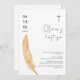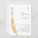 Neutral Watercolor Feather Cross Baptism Invitation
