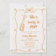 Orange hand drawn whimsical gender neutral baby shower invitation featuring a champagne bottle and popping cork as well as an orange bow frame. This boy's she's ready to pop baby shower invitation is ideal for someone looking for a gender neutral modern whimsical baby shower invitation.