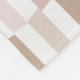 This medium fleece blanket has a geometric design of rectangles with diagonal ends in neutral tones of tan and pink, repeating throughout the design. If you like the design but prefer different colours, message me.