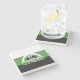 The coasters are gorgeous, a quality feel and heavy weight. They look like a precious archeological find. A rustic stone juxtaposed with a modern floral black and white print. I like the way the print goes slightly imperfect on the cut stone edges giving them a kind-of natural beauty.