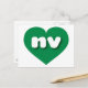 This postcard features a vibrant green heart containing the bold, white, rounded lower case letters nv, a playful abbreviation for Nevada, the silver state. The reverse side of the postcard is blank, awaiting your customised text or handwritten sentiments.