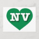 This postcard features a vibrant green heart containing the bold, white, upper case letters NV, the official abbreviation for Nevada, the silver state. The reverse side of the card is blank, awaiting your personalised text or handwritten sentiments.