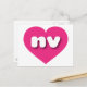 This postcard features a vibrant hot pink heart containing the bold, white, rounded lower case letters nv, a playful abbreviation for the state of Nevada, the silver state. The reverse side of the postcard is blank, awaiting your customised text or handwritten sentiments.
