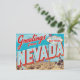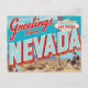 This vibrant, retro-style design captures the dramatic contrast of the Silver State. It features the classic "Greetings from NEVADA" typography alongside the iconic "Welcome to Fabulous Las Vegas" sign. The scene is set in the rugged desert landscape, complete with cacti and a classic Western cowboy on horseback, blending the excitement of the city with the state's Wild West heritage. Perfect for fans of vintage travel posters, retro artwork, Las Vegas, and the spirit of the desert.