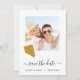 Let guests know to save the date for your wedding with this pretty minimalist photo card with a map outline of the location of your event.