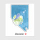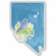 A Nevada themed sticker with the state bird, mountain bluebird, perched on a sagebrush plant hand drawn painted with watercolor in the state shape hand painted with blue. You can also transfer this design to many of the other items Zazzle sells!