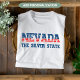 Customisable Patriotic Nevada The Silver State T-shirt for men or women, featuring a red and blue design. May be personalised with your own text. Choose "Personalise this Template" to customise, or you may keep the design as is by leaving the text fields blank. This design is also available for all products including sweatshirts, children's clothing, mugs, tumblers, and more. #zazzlemade