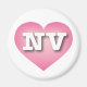 This magnet features a calm, cool, and collected pink heart with a white-washed centre containing the bold, white, upper case letters NV, the official abbreviation for Nevada, the silver state.