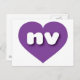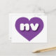 This postcard features a shapely and vibrant purple heart containing the bold, white, rounded lower case letters nv, a playful abbreviation for Nevada, the silver state. The reverse side of the postcard is blank, awaiting your handwritten sentiments or customised text.