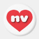 This magnet features a vibrant red heart containing the bold, white, rounded lower case letters nv, a playful abbreviation for Nevada, the silver state.