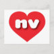 This postcard features a vibrant red heart containing the bold, white, rounded lower case letters nv, a playful abbreviation for the state of Nevada, the silver state. The reverse side of the card is blank, awaiting your customised text or handwritten sentiments.