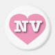 This magnet features a calm, cool pink heart containing the bold, white, upper case letters NV, the official abbreviation for Nevada, the silver state.