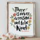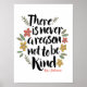 Modern Calligraphy typography design in black letters with colourful floral accents with quote, "There is never a reason not to be kind."