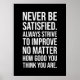 Never Be Satisfied - Gym, Hustle, Success Poster
