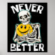 NEVER BETTER Skeleton Funny Skull Halloween Costum Poster