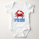 Never Crabby At The Beach cute design. It features a cartoon crab. Great for a boy or girl who loves the beach. Get it for your own beach loving son or daughter or as a beach themed baby gift.
