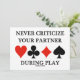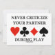 Here's a customisable bridge invitation featuring the four card suits along with the following sound bridge advice -- no matter what your rank is: "Never Criticise Your Partner During Play". Great invitation for anyone hosting a bridge event or party!