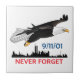 Never forget 9/11/01 with NYC skyline showing Twin Towers and Bald Eagle
