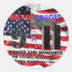 “Never Forget 9 11” in Stars and Stripes at ground zero to honour and remember the victims and heroes of September 11, 2001.
