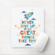 The product itself is good quality and I like the simplistic elegant design. The only criticism I have is that it's not really accurately represented by the picture provided. I thought that the mousepad would be a non-porous or laminate surface and as such the gold writing would actually shine against the soft pink. However the design is printed on a thick fabric surface, so the gold colour is just the shade of gold but doesn't stand out from the pink background. (See picture)