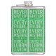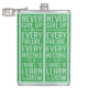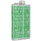 The flask itself is fine. It’s a cheap flask, obviously bought in bulk, however am prepared to overlook that. Given that it is a personalized item, I would have liked to have seen gift boxing instead of the generic packaging. Terrible printing, and/or quality. It’s a cheap, tacky vinyl. It is not cut straight and is also applied in a way that it is overhanging the bottom, causing the glue to catch on items and it will eventually roll and tear, damaging the wrap.