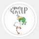 Add a touch of humour and motivation with this Never Give Up FROG Choking Bird classic round sticker. Featuring a determined frog refusing to be swallowed by a bird, this funny and inspiring design serves as a reminder to keep pushing forward no matter the odds. Perfect for water bottles, laptops, notebooks, or as a quirky gift for those who appreciate perseverance with a laugh.
