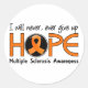 We must never give up Hope especially when it comes to a Cure for Multiple Sclerosis. Share this inspiring sentiment while lighting up a orange path for Multiple Sclerosis awareness with I Will Never, Ever Give Up Hope t-shirts, apparel, buttons, and merchandise featuring contrasting text fonts and a orange Multiple Sclerosis awareness ribbon encased in a ‘glass’ flair with a vintage edging as the ‘O’ in HOPE.