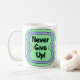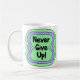 Start each day with determination and positivity with this inspiring coffee mug. The design features a bold "Never Give Up!" message framed by layered mint green and purple borders with sparkly star accents. The playful hand-drawn style combines with encouraging words to create the perfect motivational companion for your morning coffee or afternoon tea. This mug makes an ideal gift for students, friends facing challenges, or anyone who needs a daily reminder to stay persistent and keep pushing forward.