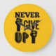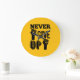 Stay inspired every hour with this bold 'Never Give Up' motivational wall clock. Featuring a vibrant yellow background and clean typography, it's the perfect decor for your gym, home office, or study room. A great gift for graduates and dreamers.