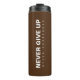 Customisable Never Give Up Never Surrender Text Elegant Modern Simple Motivational Success Quote Template Add Text Upload Image, Upload Photo or Business Logo, Company Name Promotional Brown & White Classic Thermal Tumbler.