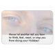 A Magnet with photograph of Blue Eyes and the phrase "Never let another tell you how to think, feel, react, or stop you from doing your Hobbies!"